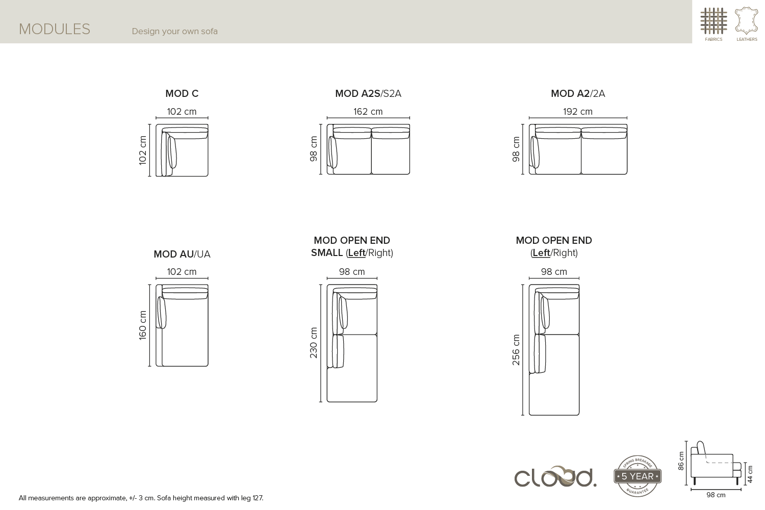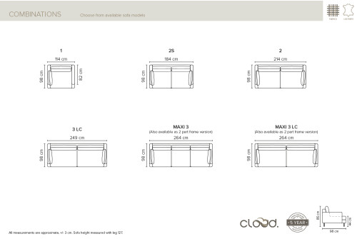 2-kohalise Boom diivani mõõdud: 214X98X86cm