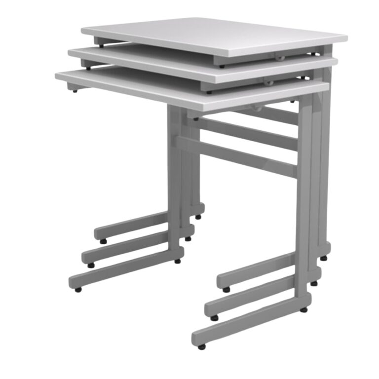 Laua tugevad L-kujulised metalljalad tagavad stabiilsuse, samas kui kerge konstruktsioon võimaldab laudu kiiresti virnastada ja ruumi vabastada grupitöödeks või muudeks tegevusteks.