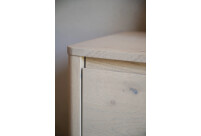 Esiosa ühtlane puidusoon, mis on valmistatud ühest plaadist, annab mööbliesemele harmoonilise ja eksklusiivse välimuse. Sisseehitatud täispuidust käepidemed sulanduvad kappi, samas kui tõstetud raam annab kummutile kergema ja õhulisema välimuse hoolimata selle tugevast konstruktsioonist.